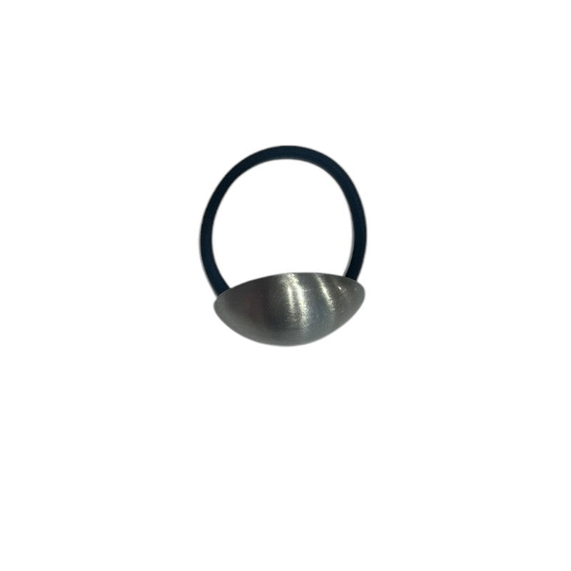Elasticul de par este realizat dintr-un material textil cu accesoriu argintiu aplicat