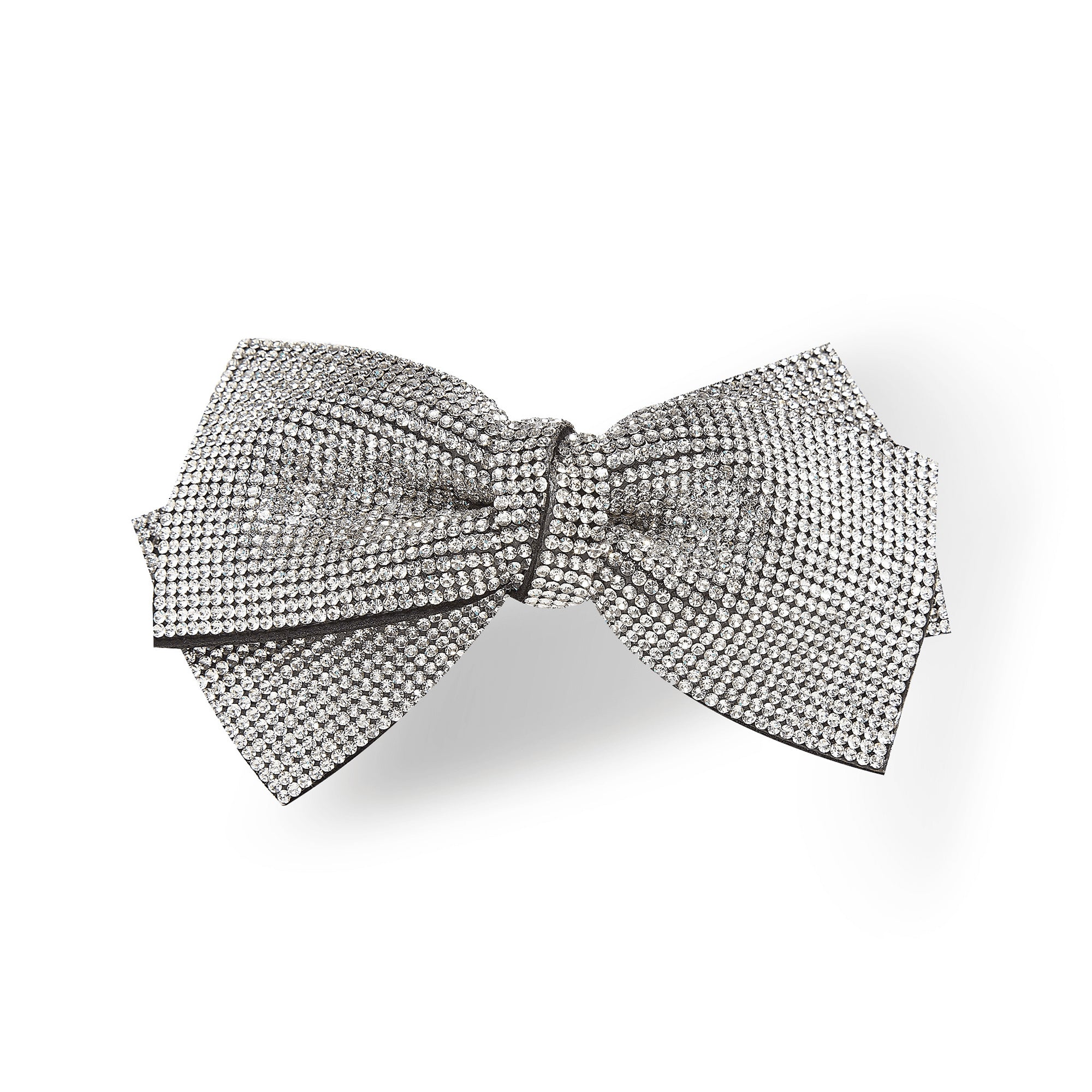 Clama pentru par in forma de fundita cu strasuri argintii este un accesoriu elegant si feminin, perfect pentru a adauga un strop de stralucire si stil oricarei coafuri.