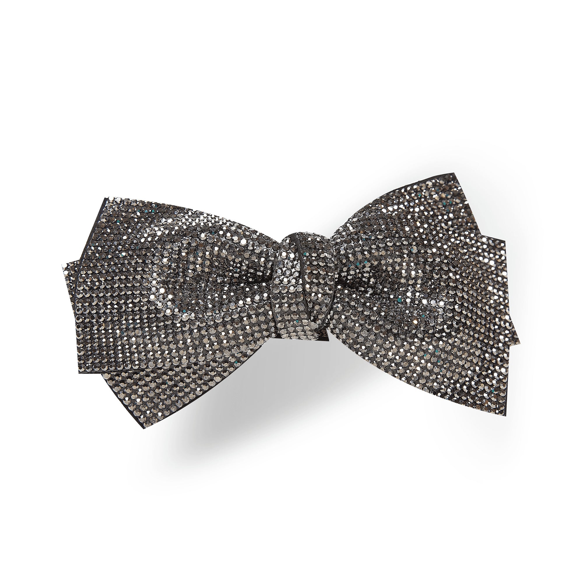 Clama pentru par in forma de fundita cu strasuri argintii este un accesoriu elegant si feminin, perfect pentru a adauga un strop de stralucire si stil oricarei coafuri.