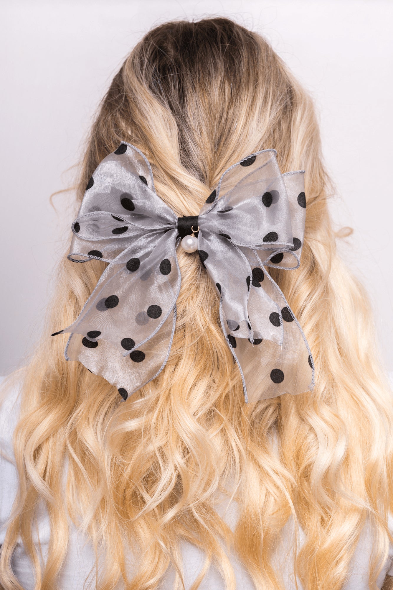 Clama de par este realizata dintr-o funda din satin cu buline si o prindere tip clama dintr-un plastic foarte rezistent Va veti putea prinde intreg parul cu ajutorul ei si realiza coafuri interesante.