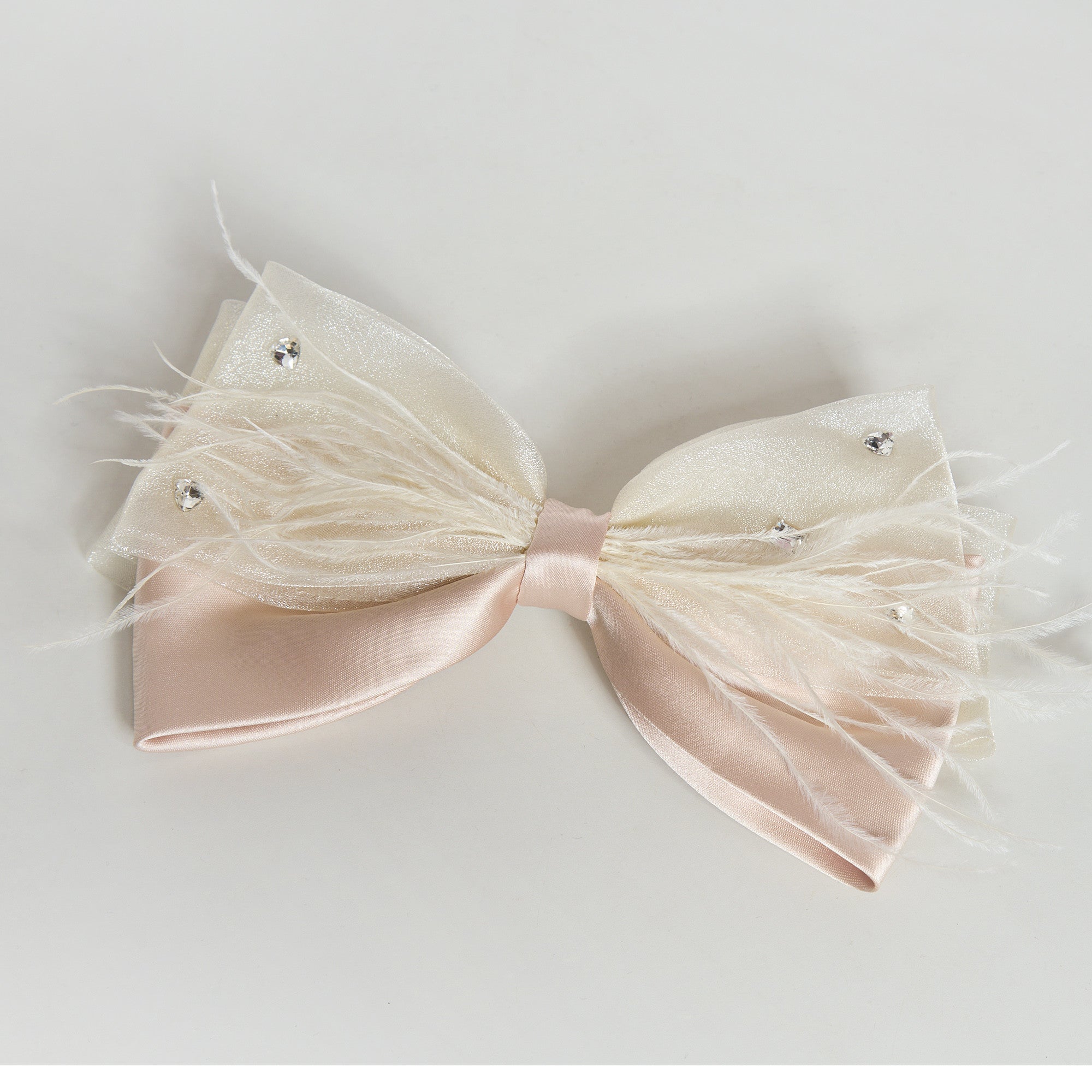 Clama de par cu pene delicate este un accesoriu rafinat care adauga un aer sofisticat si elegant oricarei coafuri.