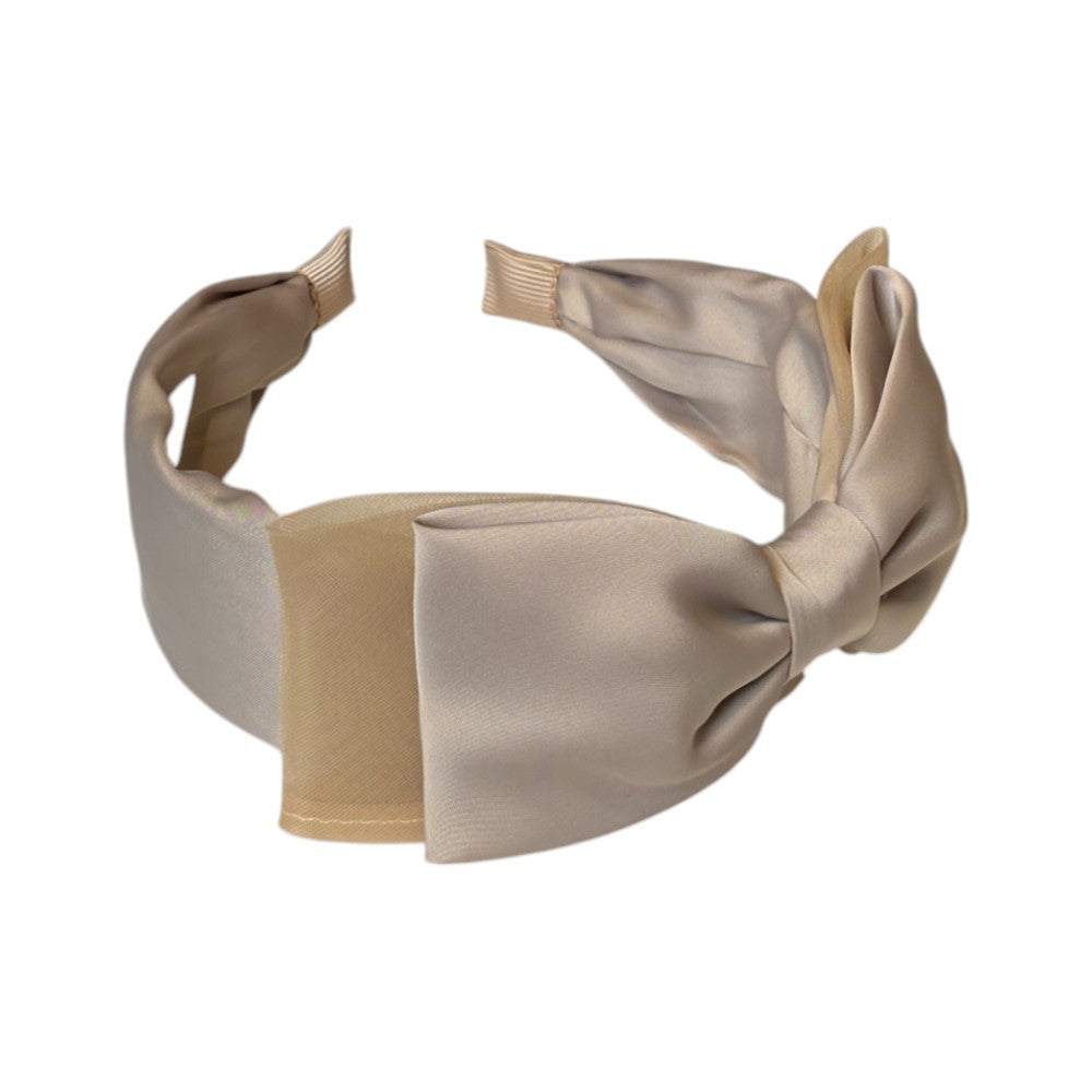 Coronita lata cu funda crem este un accesoriu elegant si rafinat, perfect pentru a adauga un strop de sofisticare oricarei tinute.