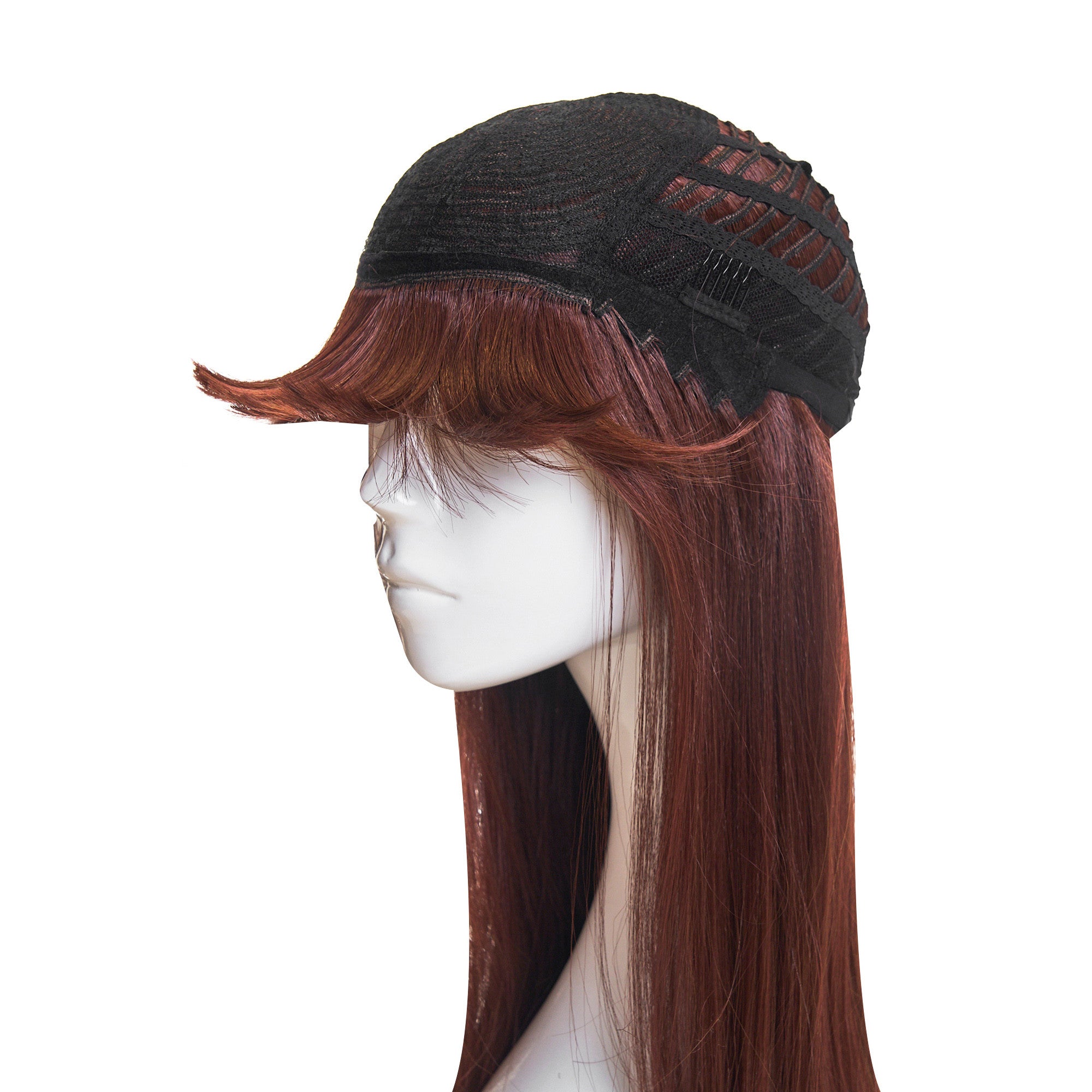 Asezati peruca in functie de plantatia parului dumneavoastra. Daca nu o simtiti sigura, reglati peruca cu ajutorul bretelelor elastice din interior.